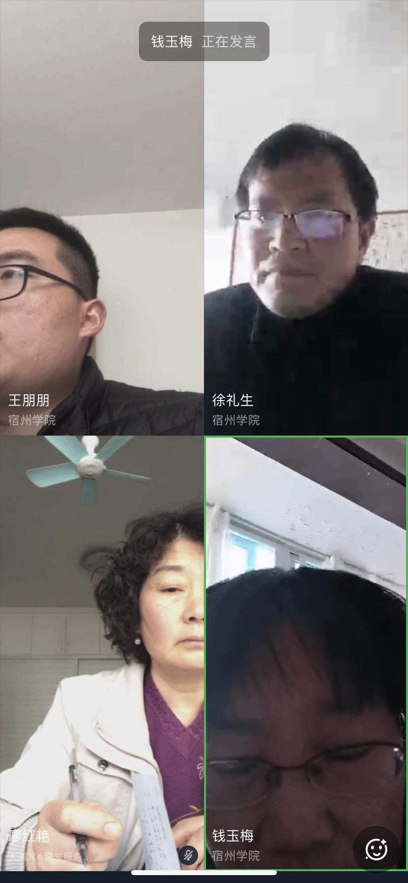 学院副院长张兴桃教授首先分享了自己线上教学的经验,他强调线上教学是我们在疫情期间为响应国家“停学不停课”的号召开展的有别于线下的教学,要与线下教学一样保质保量完成教学,课程准备要更加充分。对于线上教学过程中出现的一些常见问题,如:课堂互动不充分、有时“学习通”系统出现卡顿等问题,他指出可以在教学过程中采用多平台教学相结合的方式进行。学院教学督导钱玉梅老师分享了教学经验,她说线上教学可分为课前、课中、课后三个阶段,针对不同阶段采取相应的对策,开课前的准备:1依托学习通平台,进行自主建课,并利用网上资源不断完善网上教学资料、2建立QQ群,进行同步教学答疑和直播;线上教学过程及管理:1提前发布教学任务,督促学生自主学习,及时线上答疑、2围绕学习内容发布主题讨论,检验学生学习质量、3合理设置签到时间,采用QQ反馈等进行补签,保证100%到课率;课后巩固学习内容:为了加强学习效果,通过发布课后作业,并及时批改和订正,以期巩固学习内容。生物技术教研室主任李秀丽老师为加强学生课堂互动采用课程中抢答的方式进行提问效果很好,李红侠老师课程中采取随机连麦的方式回答问题,使学生参与度大大提高。最后辅导员(班主任)分享自己在线上教学过程中的课堂和班级管理的经验。