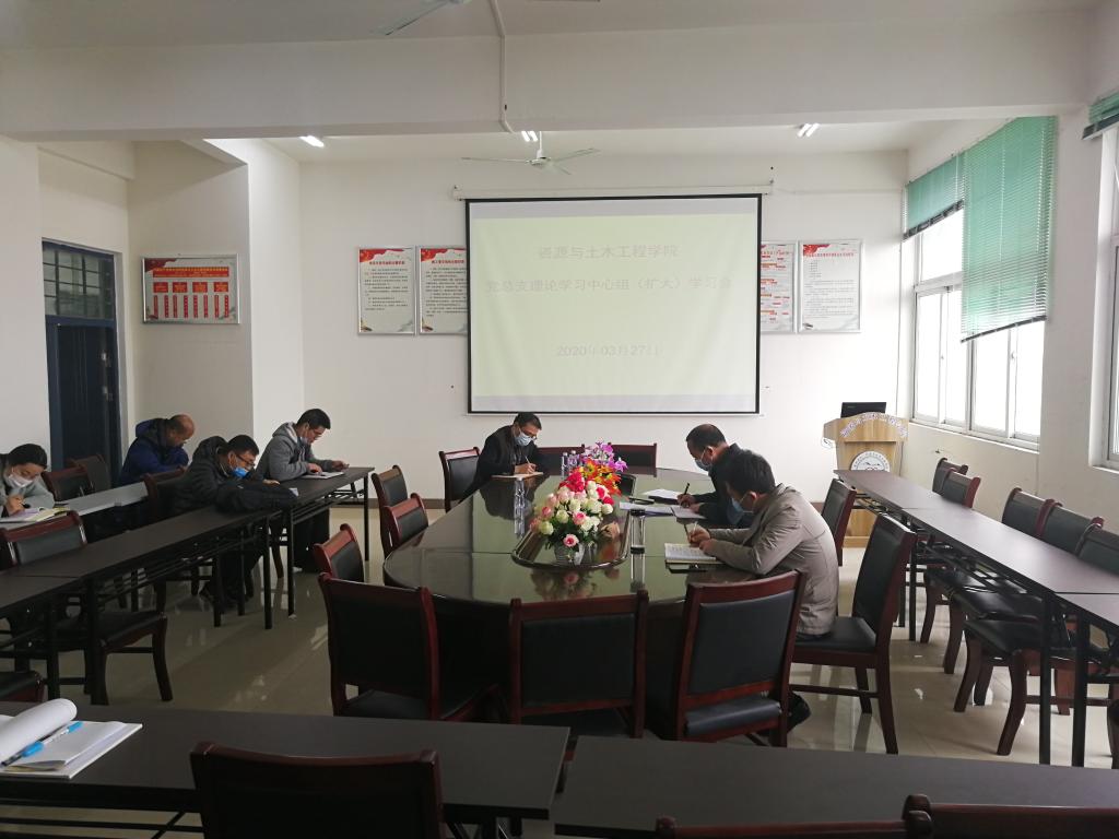 3月27日下午,资源学院在召开党总支理论学习中心组(扩大)理论学习会。全体中心组成员、科级以上干部、教研室主任参加。学习会由党总支书记刘领主持。