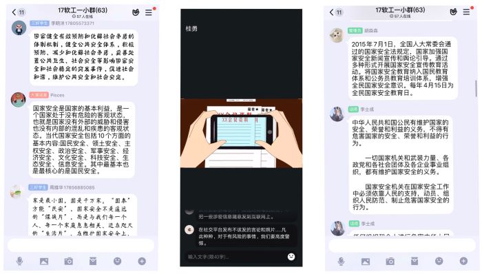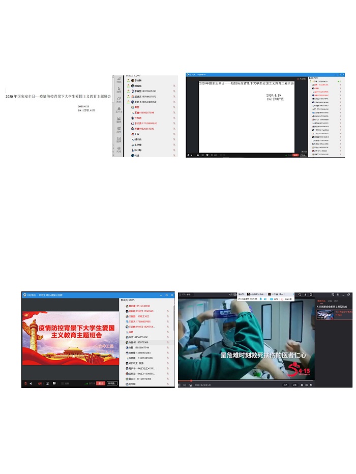 信息工程学院学院全体辅导员、班主任认真贯彻落实路红梅书记关于国家安全日系列活动工作安排,在疫情防控背景下,一方面采取线上主题班会的形式,以“坚持总体国家安全观,统筹传统安全和非传统安全,为决胜全面建成小康社会提供坚强保障”为主题,学习“中国抗疫的世界意义”、“这就是中国”视频资料、学习什么是总体国家安全观,加强大学生爱国主义教育。另一方面组织各班同学观看“同上一堂国家安全教育课”,强化学生的国家安全意识和维护国家主权、安全、发展利益的责任感和使命感。