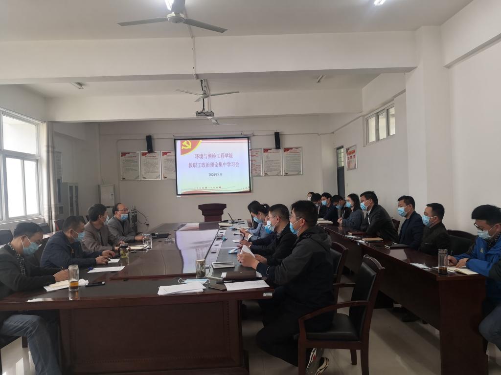 4月29日下午,环境与测绘工程学院在院会议室召开四月份教职工政治理论集中学习会。学院党总支书记袁新田、院长付金沐、党总支副书记胡冰,以及全院教师参加了会议。会议由袁新田主持。