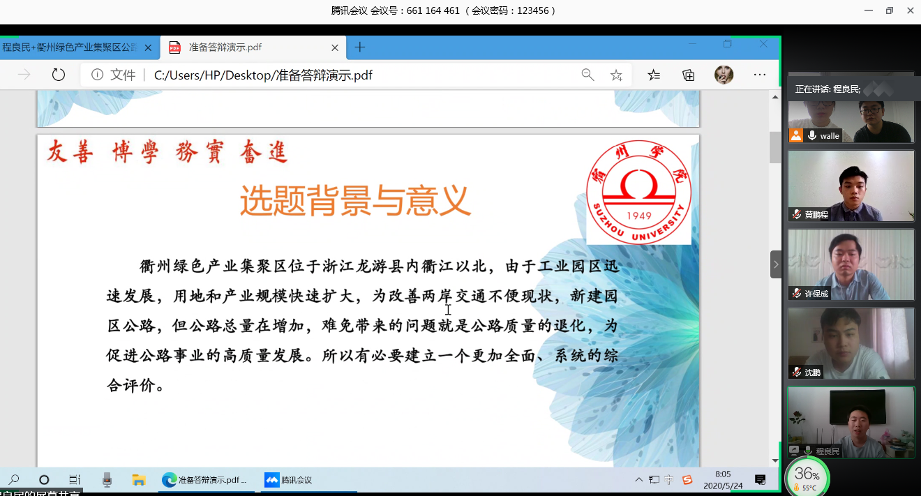为有效保证毕业论文(设计)线上答辩的质量和顺利进行,学院制定了《资源学院2020届本科毕业论文线上答辩工作实施方案》,并细化了分工并且部署了具体工作,12个答辩小组在答辩开始之前均进行了预答辩,调试设备和流程,做好应急保障措施。在答辩过程中,学生们采用屏幕分享PPT的方式,针对毕业论文(设计)研究背景、研究目标及内容、研究方法和研究结果等方面进行了汇报。答辩小组成员根据学生的汇报情况,重点指出毕业论文写作格式、研究内容和方法等存在的主要问题并提出了修改意见或建议,针对其中的经验和不足进行了总结,并对后续工作进行了安排。答辩结束后,答辩小组根据学生毕业论文汇报情况,讨论答辩结果,最后确定学生毕业论文答辩成绩并予以公示。
