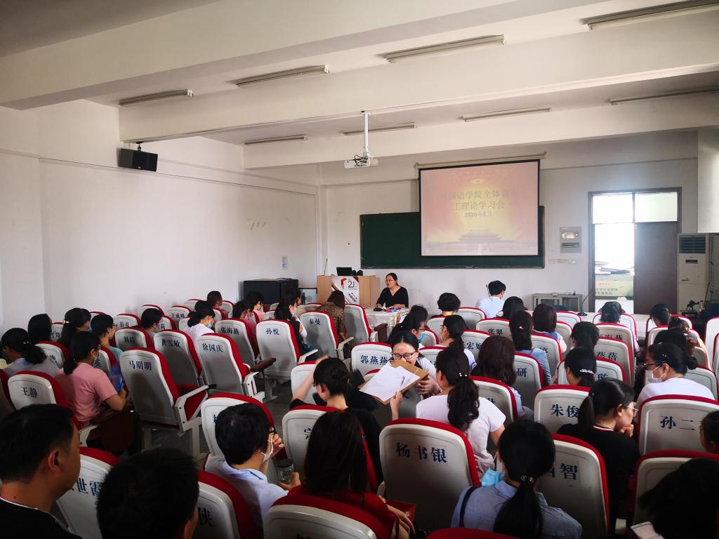 近日,外国语学院在逸夫楼一楼会议室召开了全体教职工理论学习会议,学习传达全国两会和习近平总书记在全国两会期间的重要讲话等精神。学院全体教职工参加会议,会议党总支书记王华主持。