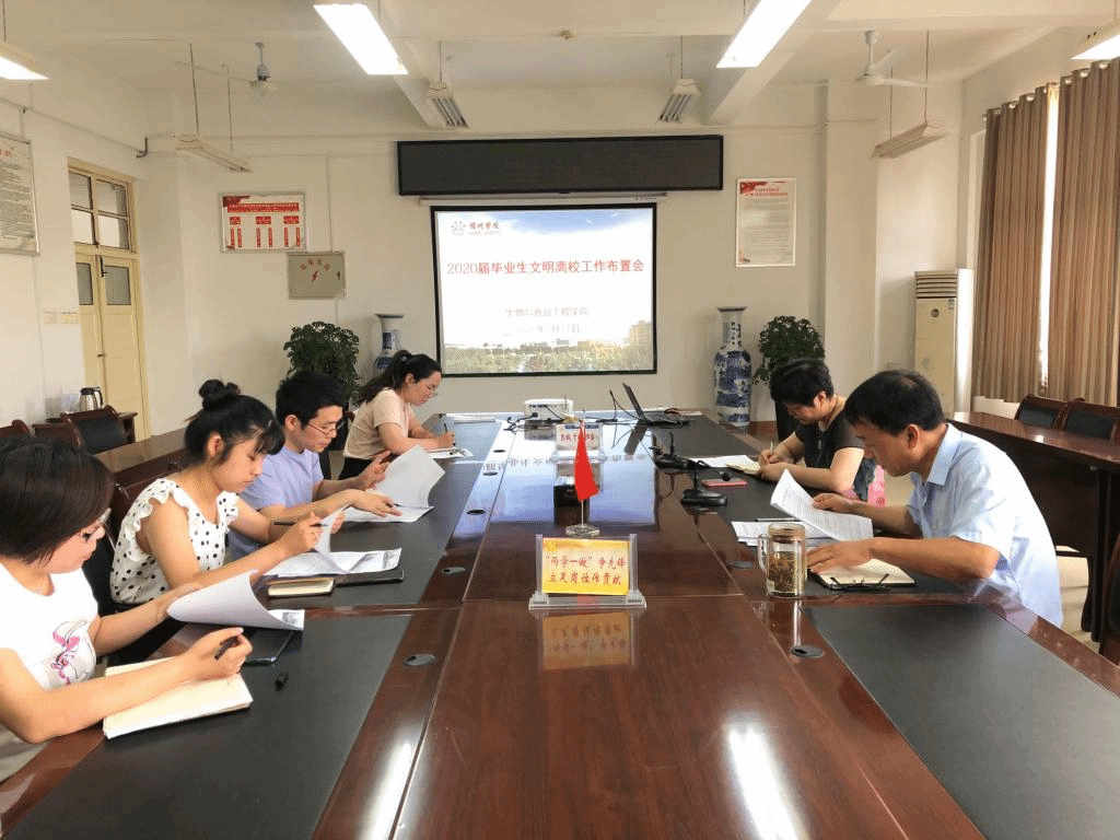 为确保毕业生文明离校工作平稳顺利,6月11日下午,生工学院在实验楼会议室召开2020届毕业生文明离校工作布置会。院长高贵珍、副院长张兴桃和毕业班辅导员(班主任)参加了会议。会议由党总支书记赵亮主持。