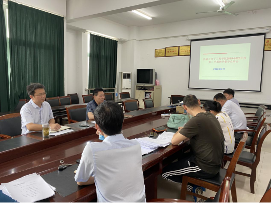 2020年6月11日上午9点30分,机电学院在工C302会议室召开2019-2020年度第二学期教学督导总结会。院长郭焕银、副院长朱光和教学督导老师们参加了会议。