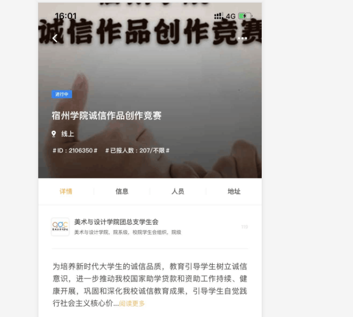 为培养新时代大学生的诚信品质,教育引导学生树立诚信意识,进一步推动我校资助工作持续、健康开展,巩固和深化我校诚信教育成果,引导学生自觉践行社会主义核心价值观。2020年6月3日—6月20日由宿州学院学生资助管理中心主办,美术与设计学院承办的“树诚信风尚,做自强青年”诚信作品创作竞赛在梦空间报名展开。