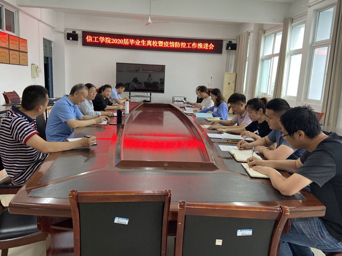 根据目前疫情防控形势,结合学院实际,切实做好2020届毕业生离校服务工作,信息工程学院于6月23日上午在工B315会议室召开2020届毕业生离校暨疫情防控工作推进会。会议由党总支书记路红梅主持,院长宋启祥、副书记吴翠华、副院长吴孝银以及所有科级干部和全体辅导员、班主任参加了会议。