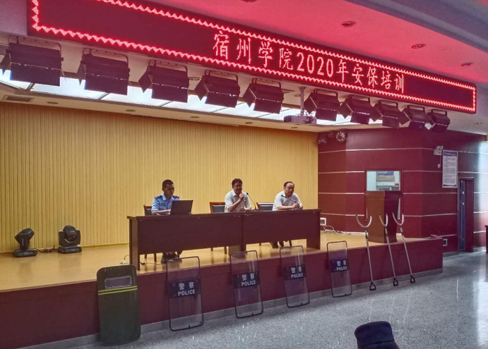 培训会上,宿州市公安局国保支队卢远芳同志讲解了反恐知识和校园突发事件处置办法,并带领安保队员对安保装备器械进行了演练。保卫处综治科长王敦勇结合疫情防控要求,要求安保队员工作中要做到一丝不苟、慎之又慎,严格履行岗位职责,才能确保校园安全稳定,为2020届毕业生顺利返校创造一个安全的校园环境。