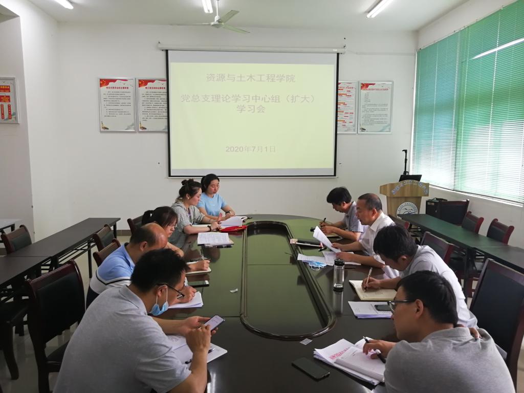 在喜迎中国共产党成立99周年之际,7月1日下午,资源与土木工程学院党总支在三楼会议室召开理论学习中心组(扩大)学习会。学院党总支理论学习中心组成员、党总支委员、科级以上干部及支部书记参加会议,学院党总支书记刘领主持会议。