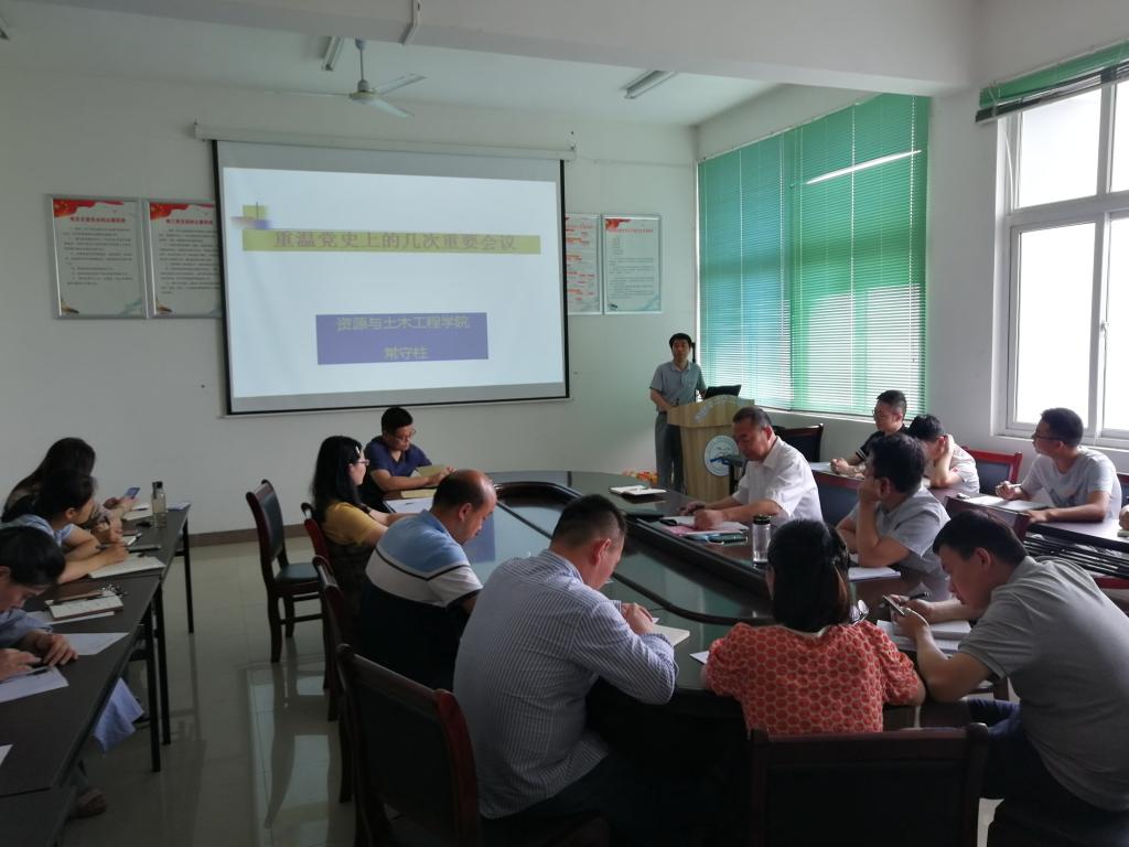 在中国共产党成立99周年之际,7月1日下午,资源与土木工程学院在三楼会议室召开了教职工理论学习会,开展党史教育日活动,聆听“重温党史上的几次重要会议”专题讲座。党总支书记刘领主持会议,全体教职工参加学习。