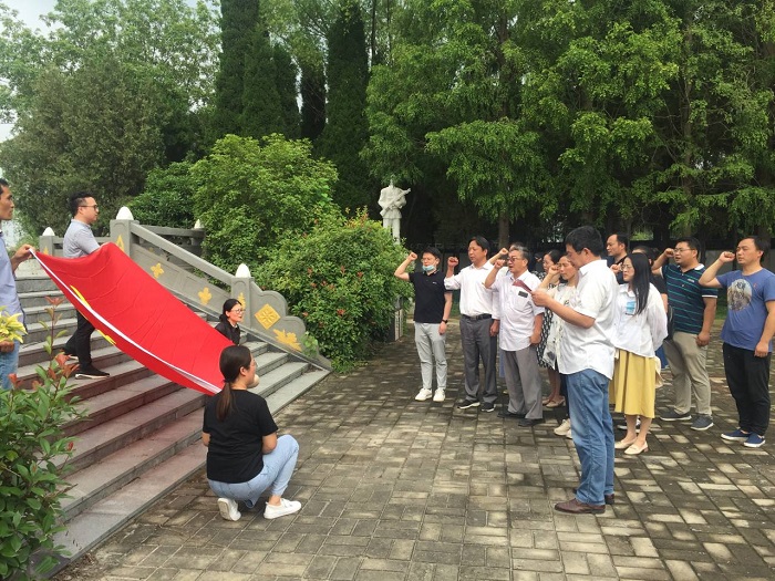 值此中国共产党99华诞之际,7月1日下午化学化工学院教工两个支部开展“敬先烈、知使命”为主题的主题党日活动。教工党两个支部党员、入党积极分子一行18人来到宿东革命烈士陵园,寻先烈足迹,重温入党誓词,不忘初心,牢记使命。