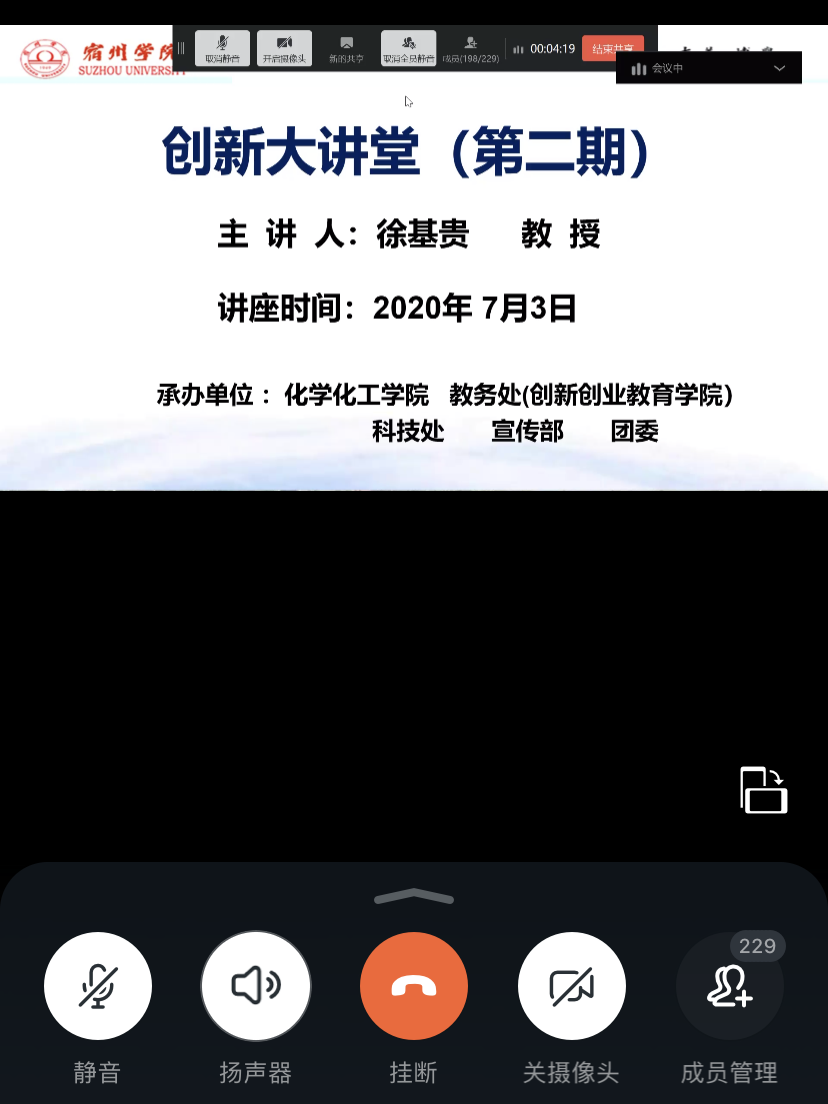 2020年7月3日晚8:00,化学化工学院在“钉钉”组织开展了青年创新大讲堂在线课堂,党总支书记徐基贵做了题为发现“化学之美”,建设“美丽中国”的主题讲座,化学化工学院2018级,2019级全体同学参加。