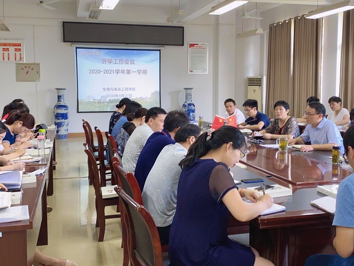 2020年8月27日上午生工学院在学院会议室召开新学期工作会议。学院党总支书记赵亮、院长高贵珍、图书馆馆长曹稳根、副院长张兴桃及全体教职工参加了本次会议。