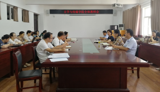 为确保新学期各项教学工作顺利开展,8月27日上午9:00,文学与传媒学院在教A303召开2020-2021-1学期第一次全体教师教学工作会议,党总支书记李月云、副书记王绍卫、副院长张德岁及全体教师参会。会议由院长蒋宗霞主持。