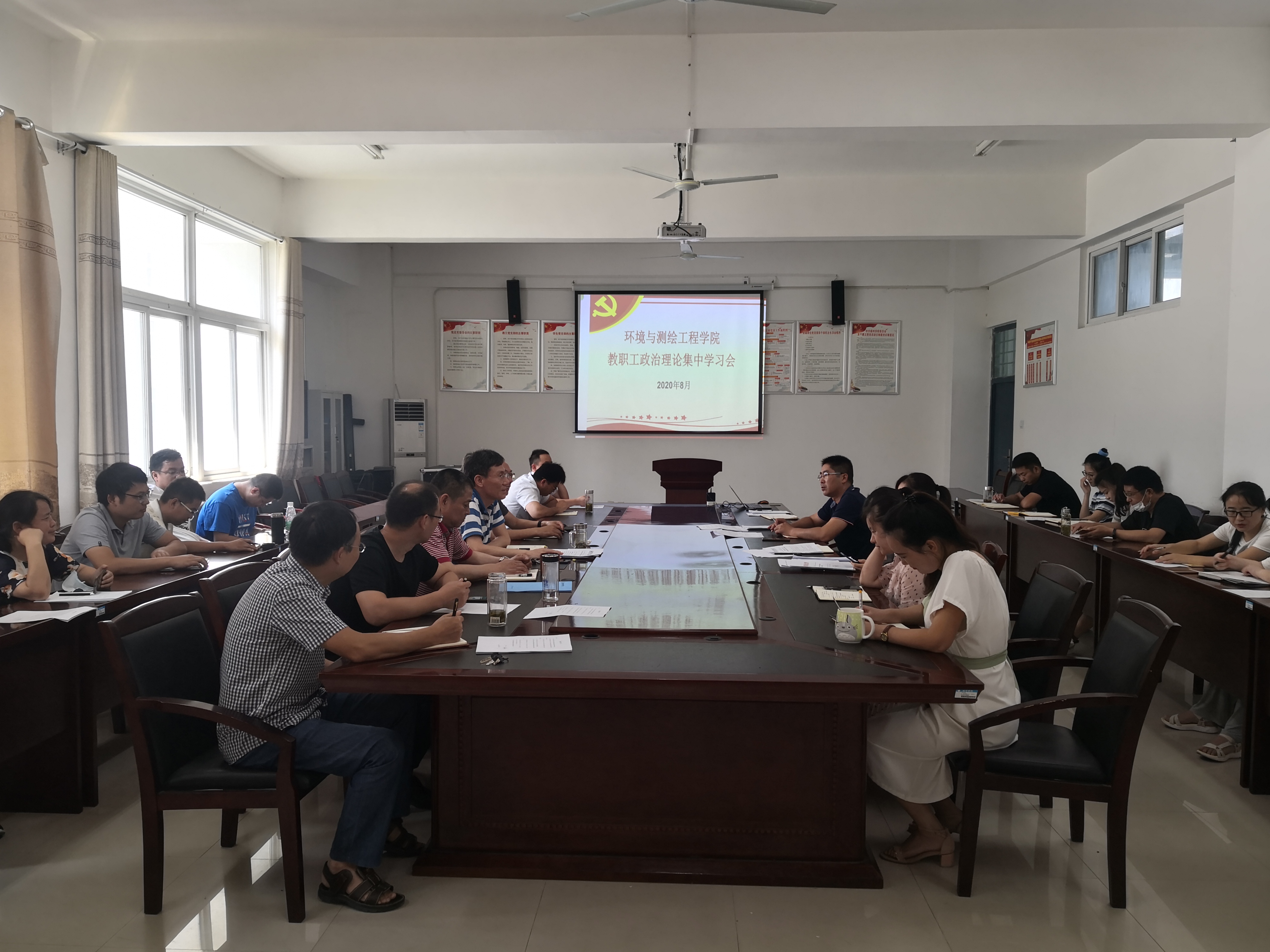 8月28日上午,环测学院党总支在院会议室召开八月份全院教职工政治理论集中学习会。院党总支书记袁新田、院长付金沐、党总支副书记胡冰和全体教职工参加了会议,会议由袁新田主持。