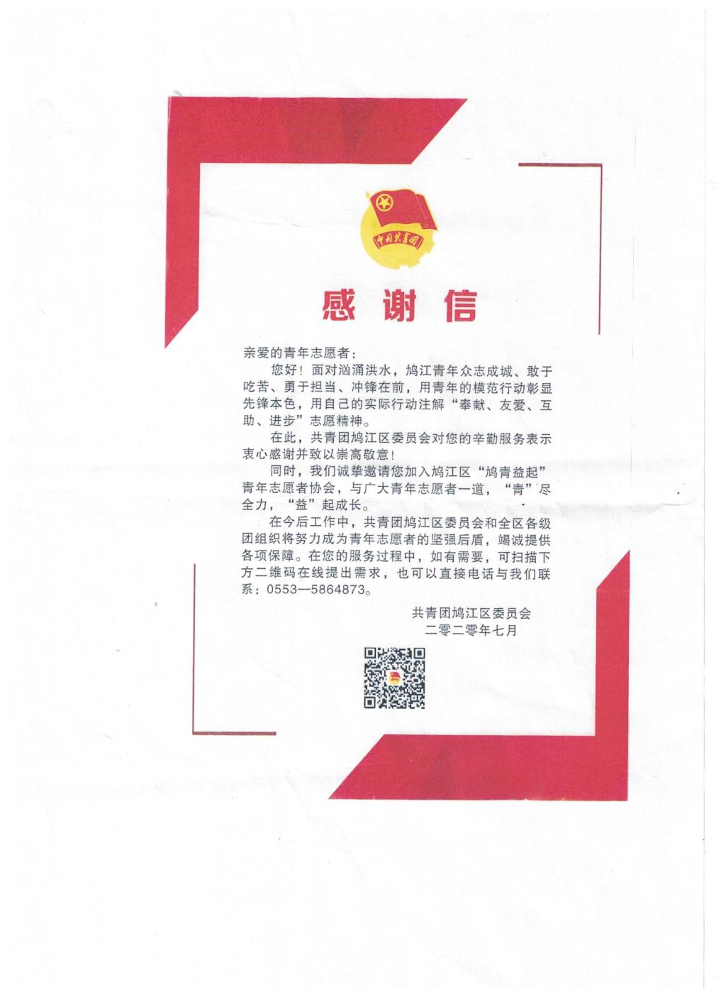 洪水无情人有情,投身一线显担当。七月以来,受持续降雨影响,安徽省洪水肆虐,部分地区发生严重洪涝灾害。面对险情,宿州学院生工学院青年学子纷纷闻“汛”而动,18级食品质量与安全蒋龙吟自告奋勇加入到当地的抗洪防汛志愿服务队伍当中,以实际行动保卫家园,共同筑起防汛青春堤坝。在汤沟镇防汛抗洪工作中,被汤沟镇文明办、汤沟镇团委授予优秀志愿者荣誉称号。