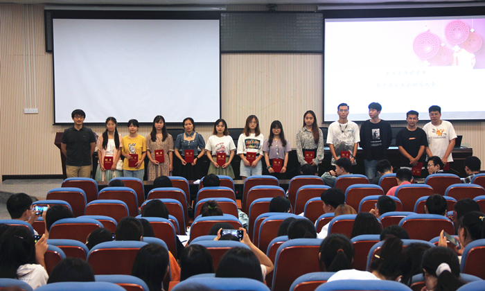 第十一届学生会部门竞选候选人依次上台竞选演讲。竞选者从自我介绍、工作体会和未来工作展望等部分展开,多数同学提到对学生会工作的历练与学长学姐们帮助的感恩。现场气氛十分热烈,竞选者们热情满怀,慷慨激昂。随后,张浩老师为各部门负责人颁发荣誉聘书,并做了总结性发言。他肯定了学生会成员一年来的努力付出与丰顺成果,并对大家兢兢业业的工作和为学院的付出表示诚挚感谢,并激励竞选者们要“长江后浪推前浪”,不断超越过往与自我,在接下来的一年里,在文学与传媒学院学生会做出一番新的成就。最后全体人员一起合影留念,本次换届大会圆满落下帷幕。