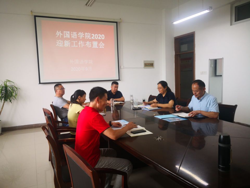 为更好地配合学校做好迎接2020级新生工作,给新生留下美好的第一印象,外国语学院2020年秋季迎新工作专题会议于9月14日下午在318会议室召开,党总支书记王华主持会议,副书记郝景东,新生班辅导员和团总支宋皓参加会议。