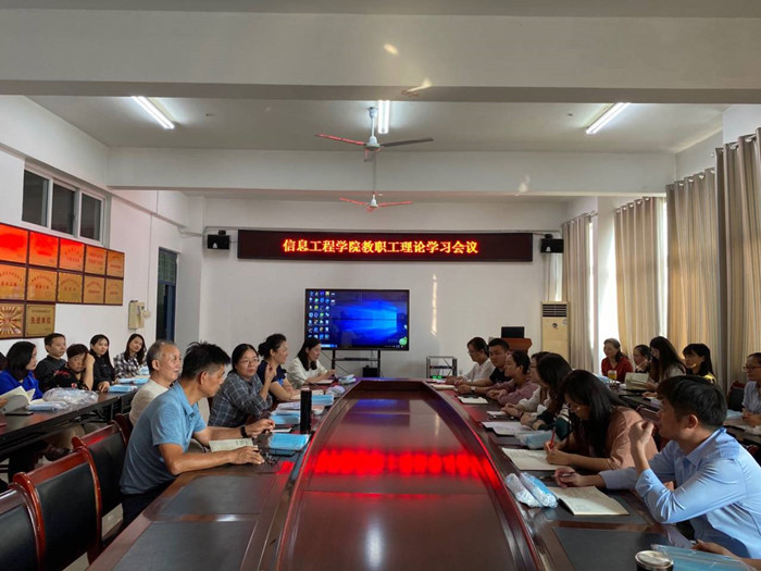 9月23日下午,信息工程学院于工B315会议室召开教职工理论学习会议。会议由党总支书记路红梅主持,信息工程学院副院长吴孝银做汇报,全体教职工参加了会议。