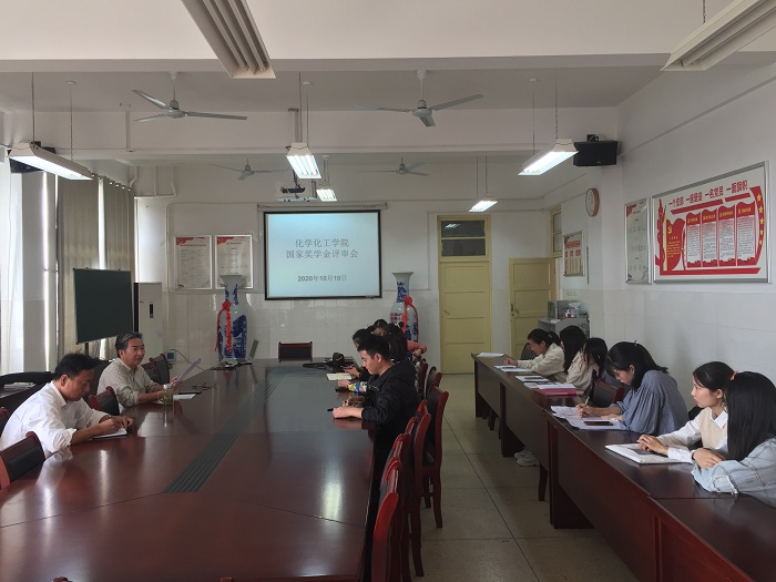 10月10日,化学化工学院在学院会议室召开2020年国家奖学金评审会。院党总支书记徐基贵,副书记史洪伟及全体辅导员参加会议,会议由徐基贵主持。