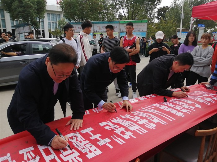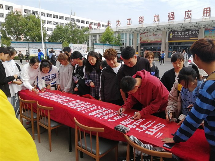 本次活动还得到了学校领导和各个部门的支持,校党委副书记蔡之让、工会主席王勇、国有资产管理处处长芦伟及许多师生都纷纷在签名横幅上签下了自己的名字。