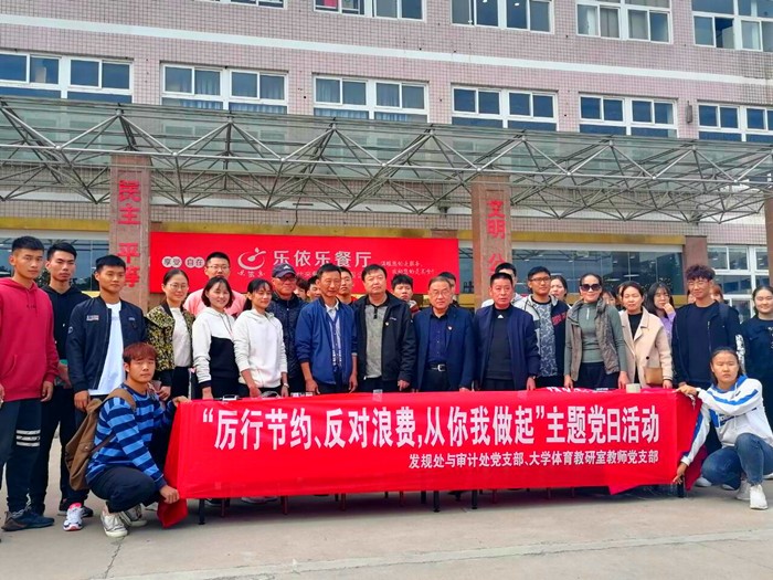 为贯彻落实习近平总书记关于制止餐饮浪费行为的重要指示精神,倡导积极向上、科学健康的生活方式,助力形成“浪费可耻,节约为荣”的社会风尚。10月20日中午,发规处与审计处党支部和大学体育教研室教师党支部在第一食堂门前举办了“厉行节约,反对浪费,从你我做起”的主题党日活动,两个支部全体党员和学院领导参加了此次签名活动。