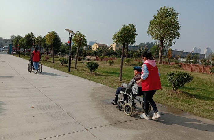 活动中,志愿者们严格遵守疫情防控要求,和老人们促膝长谈,了解老人们幸福生活背后的故事;才艺组上场唱歌给老人们听;有的志愿者推着轮椅带爷爷奶奶遛弯;有的志愿者到老人的宿舍,帮他们打扫卫生,整理床铺、给老人揉肩捏背、剪指甲、梳头等,这些温馨的画面让老人脸上洋溢着幸福的笑容,整个院子充满了欢声笑语。