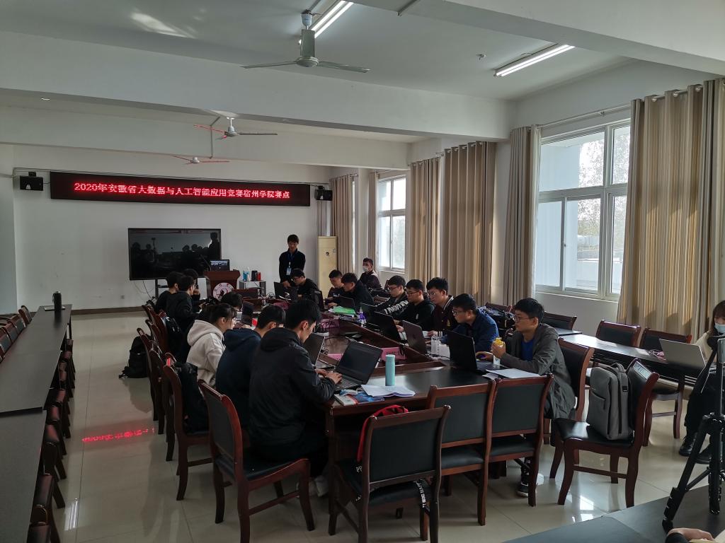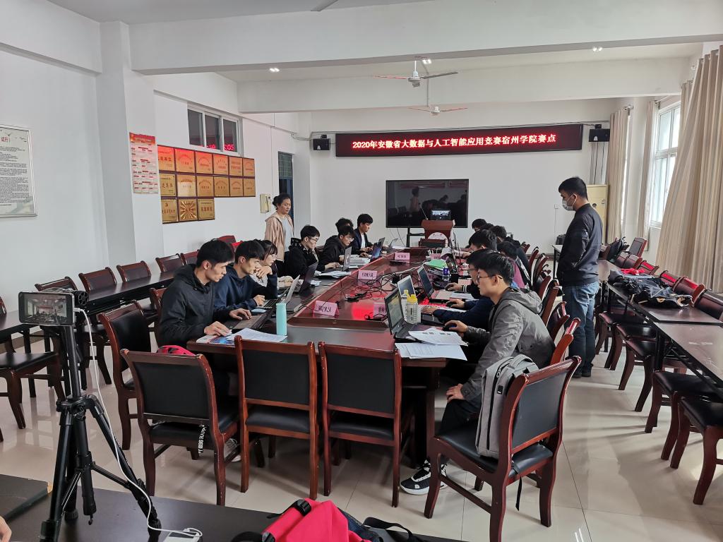 在各级领导、大数据学科负责人崔琳教授的关心和支持下,经过前期初赛,信息工程学院共6支队伍进入决赛,根据疫情防控需要,今年决赛采用分布式赛场的方式进行,每校参赛队伍在本校进行比赛,宿州学院赛场安排在信息工程学院工B315会议室,于2020年10月31日成功进行决赛。信息工程学院张志伟、王胜以及滁州学院相旭东三位老师负责监考,期间信息工程学院吴孝银副院长对竞赛进行指导和巡视。