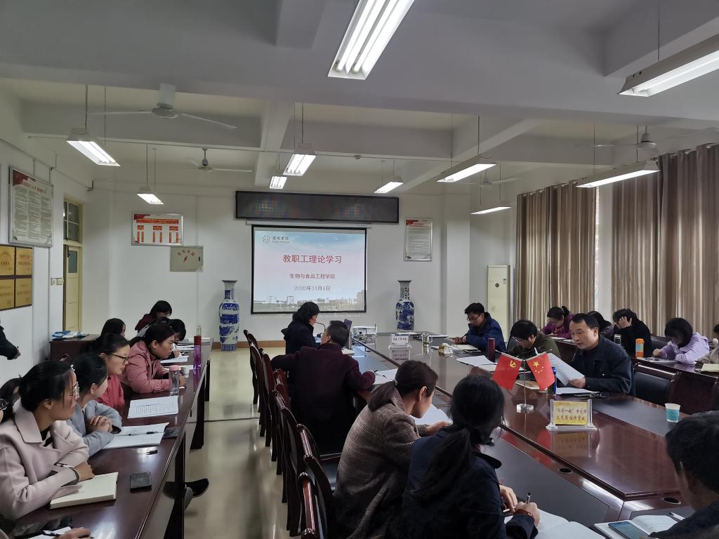 11月4日下午,生工学院在实验楼A206召开教职工理论学习会,学院党总支书记赵亮主持会议,全体教职工参加。