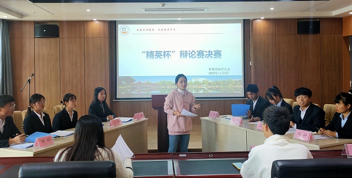 为丰富同学们的课外生活,培养他们的思辨能力和语言表达能力,10月22日至11月4日,管理学院于实习实训楼举办“精英杯”辩论赛。此次活动由院学生会主持,各班辩论选手参加。