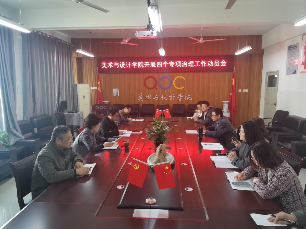 11月9日,美术与设计学院在艺术楼B402会议室召开了四个专项治理工作动员部署会,党总支书记吴晓沛主持,美术与设计学院党总支委员、科级以上干部、党支部书记及教研室主任等参加会议。