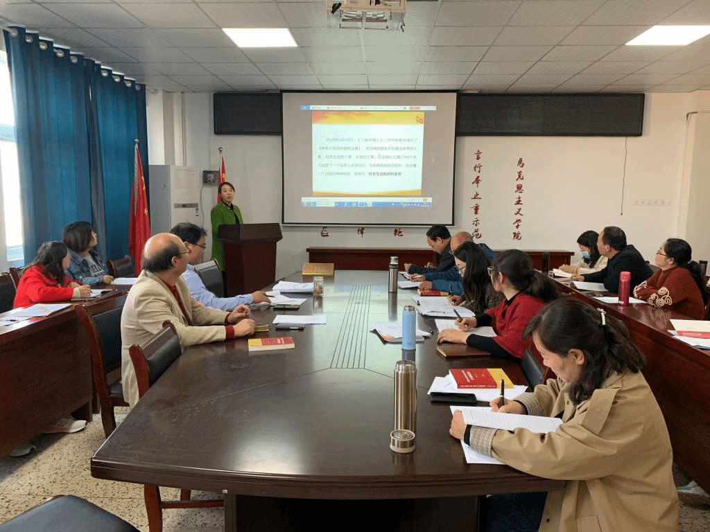 11月11日下午,马克思主义学院召开11月份党员和教职工理论学习会暨“学党史·讲党课·跟党走——党课开讲啦”第七讲,学院党总支书记赵国付主持会议,全体党员和教职工参加。