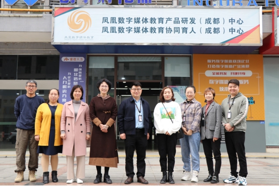 互联网与数字技术发展,不断促进着我国数字创意产业的进步,对数字创意人才需求旺盛。为有效整合校、企各方力量,通过深层次的校企合作,加快我校视觉传达专业、新闻学专业的升级改造以及网络与新媒体专业的建设发展,提高人才培养质量和效率,应凤凰数字媒体产业教育集团邀请,美术与设计学院党总支书记吴晓沛、文学与传媒学院院长蒋宗霞、视觉传达教研室主任王子婷、新闻学教研室主任蒋月侠、新闻学专业教师王连功一行于11月12日至13日在成都对凤凰数字媒体产业教育集团进行考察。