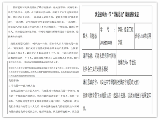 本次“课程思政”的思想建设不仅让同学们将课堂知识与自身生活进行融会贯通,也激发了同学们对于担当民族复兴大任的责任感与使命感。同时更加明确了我们每一位新时代中国青年为实现中华民族的伟大复兴梦想矢志不渝的前行方向。