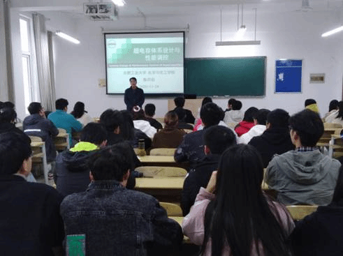 陈祥迎教授首先从自身的科学研究经历出发,介绍了超级电容器的概念、储能机理、类型、发展历程以及结构和性能测试,并着重介绍了中国超级电容器优秀品牌的市场。随后,陈教授以Yury Gogotsi和Patrice Simon两位国际顶尖科学家的研究方向和研究成果为例,向学生传授“什么是科研,怎么做科研,如何做好科研”,在阅读科研文献资料同时,一定不能全盘接受,要带着“为什么”去深度思考。接下来陈教授重点介绍了电极碳材料的结构设计、掺杂与表面改性,DES电解液的体系设计与性能调控,电解液添加剂的选取与性能协同,以及陈教授课题组近期的研究成果。
