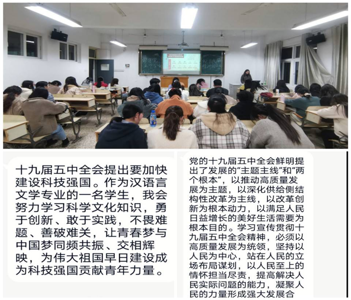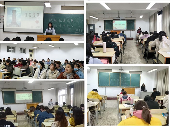 此次主题团日活动内容丰富、形式多样,具有深刻的教育意义。2018级新闻学团支部带领全班同学欣赏《中国人民志愿军战歌》,学习习近平总书记在纪念中国人民志愿军抗美援朝出国作战70周年大会的讲话;2018级文化产业管理团支部组织全体团员观看了《抗美援朝保家卫国》纪录片以及习近平总书记在中国人民革命军事博物馆的参观历程;2018级汉语言文学一班团支部全体团员一起学习四史,观看历史发展进程,并交流感悟体会;2018级汉语言文学二班团支部通过班会形式学习十九届五中全会精神,交流心得体会;2019级汉语言文学一班团支部组织全班同学参加党史、改革开放史、新中国发展史知识竞赛;2019级汉语言文学二班团支部组织团员制作相关视频或围绕主题写一篇感想;2019级文化产业管理团支部组织了“致敬抗美援朝,争做时代新人”的宣讲活动;2019级新闻学团支部组织同学们线上观影,并通过视频连线交流观影体会,加深对国家的深厚情感;2020级新闻学一班团支部组织同学们观看抗美援朝纪录片,向抗美援朝志愿军们致敬;2020级新闻学二班团支部组织同学们观看了相关主题纪录片,全面了解了小康社会的意义和奋斗过程;2020级文化产业管理团支部组织同学观看了抗美援朝影片,理解抗美援朝精神的内涵;2020级汉语言文学专升本团支部组织观看了相关视频,学习了十九届五中全会精神。
