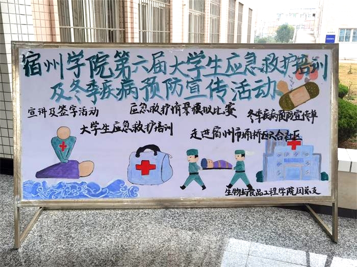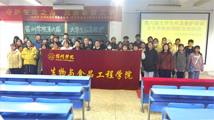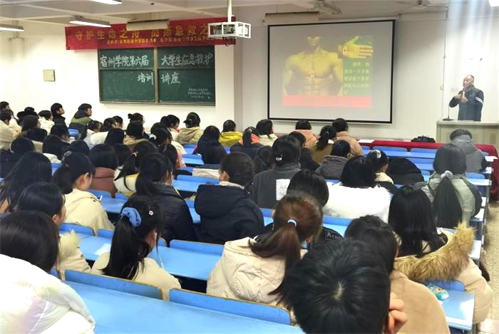为了增强大学生的急救意识,提高急救技能。12月2日下午2点,由共青团宿州学院委员会主办,生物与食品工程学院团总支承办,宿州市红十字精神传播大队、宿州市埇桥区六合社区协办的宿州学院第六届大学生应急救护培训讲座于教学楼B103举办,著名急救培训专家岳勋老师参与此次活动。