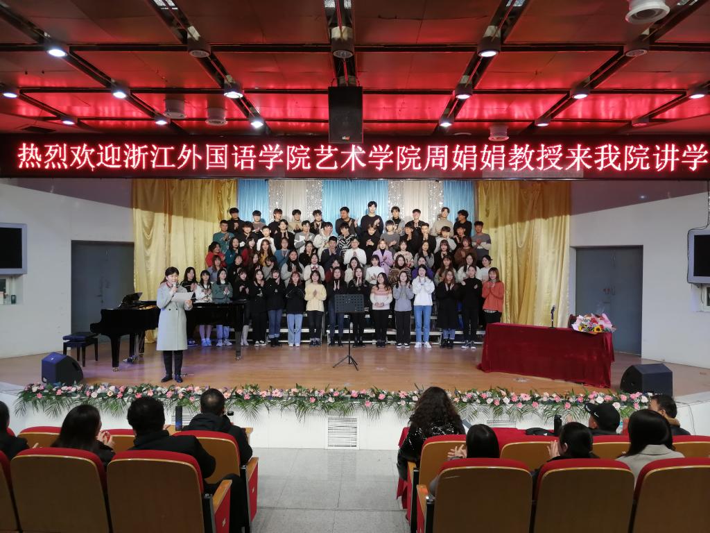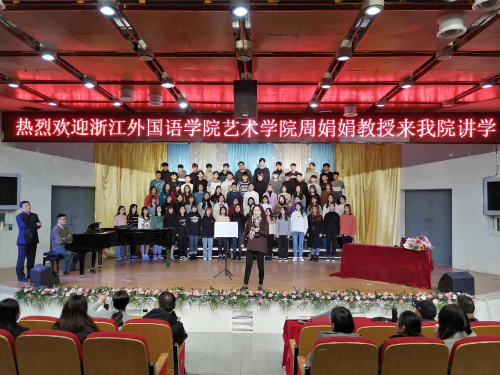 此次活动邀请了浙江外国语学院艺术学院声乐、合唱指挥双专业周娟娟教授,周娟娟教授,上海音乐学院硕士,国家公派美国波士顿大学音乐学院、新英格兰音乐学院声乐和合唱指挥双专业访问学者,中国教育学会音乐教育分会合唱指挥委员会委员,浙江省合唱指挥协会理事,美国合唱指挥协会会员,美国声乐教师协会会员。周教授的作品以其美好的音色、和声的共振效果、不同风格作品的细腻表现、纯美的音乐性赢得国内外专家评委的高度评价和观众们的倾情喜爱。