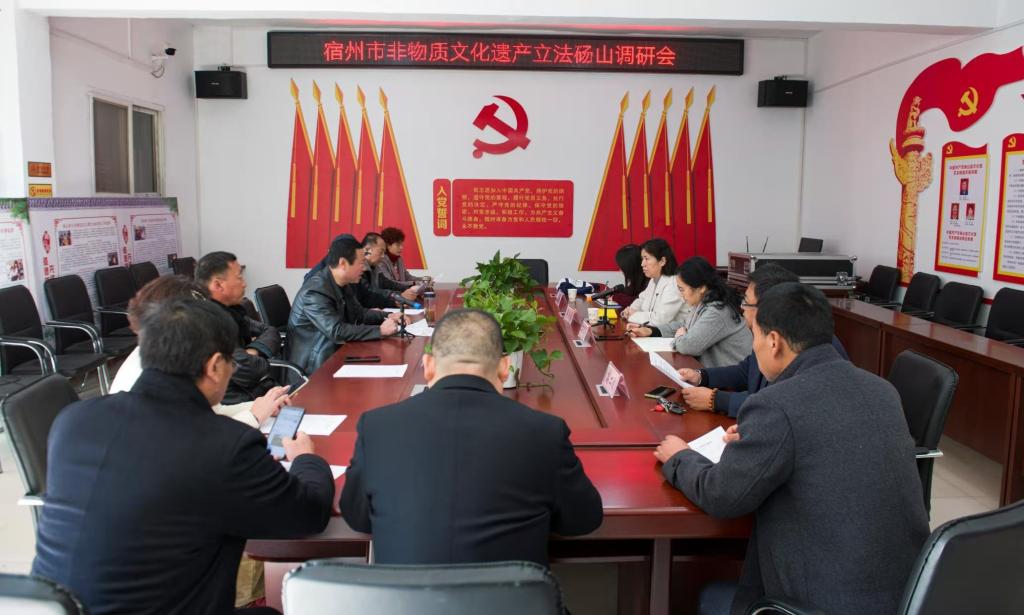 这次走访和调研受到了各县区的高度重视。会上,各县区一致认为,为做好宿州市非物质文化遗产的保护与传承工作,非遗保护条例亟待出台;同时,希望通过立法,让非遗保护工作能更加顺畅。项目组对文化主管部门及非遗传承人分别发放了问卷,并进行了个别深入访谈,这为下一步宿州非遗立法的起草获得了宝贵的数据。