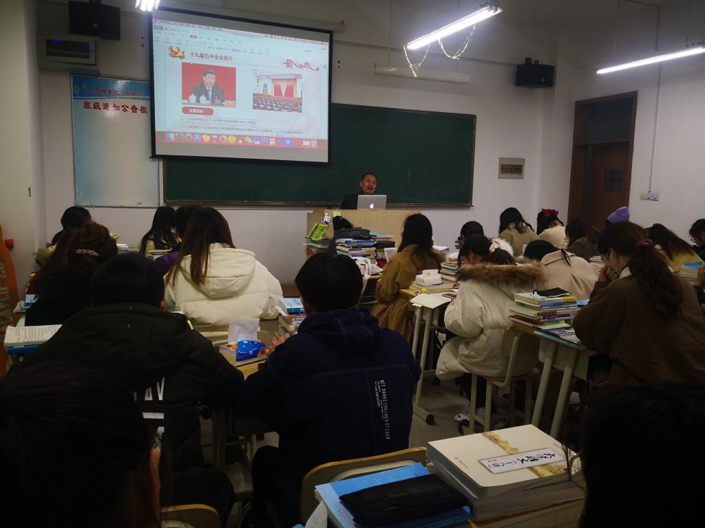 12月2日,外国语学院党委副书记、副院长郝景东在逸夫楼A221教室为学生党支部讲题为《学习贯彻党的十九届五中全会精神》专题党课。外国语学院学生支部书记、支部委员、全体党员参加学习。