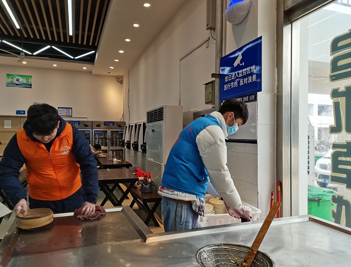 活动开始前,志愿者们先于食堂门口集合,并在领取活动服装后跟随各组负责人分别前往一食堂、三食堂两个地点开展活动。在活动中,志愿者们充分发扬志愿精神,有的主动在食堂门帮助服务人员收取餐盘,有的则为食堂认真整理桌椅、擦拭餐桌,他们忙碌的身影不仅彰显了当代大学生的社会责任感与乐于奉献意识,更展现了学院优秀的志愿风采。最后,刘大为表示,学院对此类志愿服务活动予以高度重视,他希望各位志愿者能够在实践的基础上发挥宣传教育作用,促使光盘行动得以在各个班级中进一步开展。