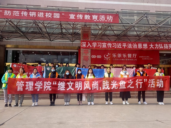 为提高学生们的志愿服务能力和环境保护意识,贯彻落实习近平总书记对于提倡“厉行节约、反对浪费”作出的重要指示。12月11日中午,管理学院社会责任教育中心联合20级25名同学在学院党委书记刘大为的指导下开展了“扬勤俭之风,添光盘之彩”志愿服务活动。