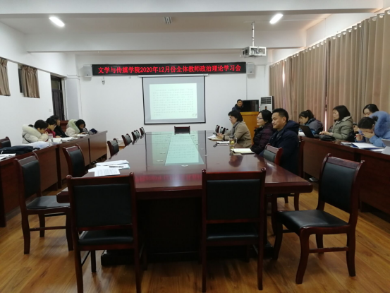 12月16日下午2:40,文学与传媒学院在教A303召开全体教师教学工作会议,院长蒋宗霞、党委书记李月云、副书记王绍卫、副院长张德岁及全体教师参会。会议由蒋宗霞主持。