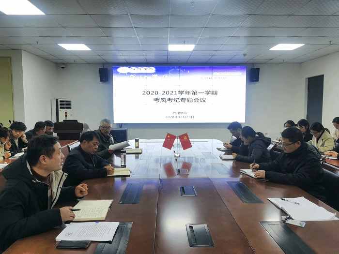 为严肃考风考纪,加强学生诚信教育,促进学风考风建设。12月23日,管理学院于实训楼C301教室召开了2020-2021学年第一学期考风考纪专题会议。此次会议由学院党委书记刘大为主持,党委副书记王永宁、副院长韩传龙及学院全体教师参加。