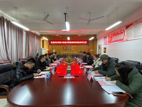 2020年12月30日,安庆师范大学美术学院院长朱胜甲一行6人来我院指导交流工作。美术与设计学院党委书记陈述立,院长许兴海、各部门负责人及教研室主任参加了交流研讨座谈会,会议由党委书记陈述立同志主持。
