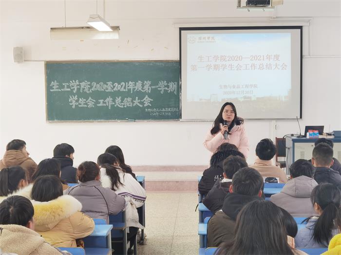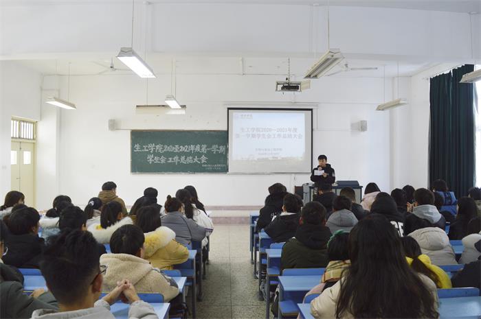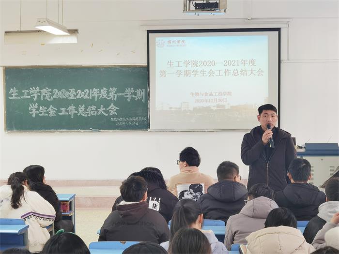 为深入学习贯彻习近平新时代中国特色社会主义思想,贯彻党的教育方针,落实立德树人根本任务,响应学校关于加强学生干部队伍建设的号召。2020年12月30日下午1点,生工学院于教学楼B107召开2020-2021年度第一学期学生会工作总结大会。生工学院团总支书记李娜、团总支副书记吴长昊以及全体学生会成员参加此次大会。