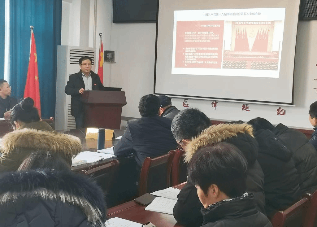 2021年1月13日,马克思主义学院召开党员和教职工政治理论学习会暨“党课开讲啦——十九届五中全会精神宣讲”,学院党总支书记赵国付主持会议,全体党员和教职工参加。
