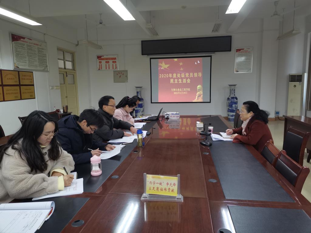 按照校党委《关于认真开好2020年度处级党员领导干部民主生活会的通知》要求,2021年1月19日下午,生工学院召开了专题民主生活会,会议由学院党委书记赵亮主持,宿州学院党委组织部部长陈啸吟参加并进行了点评,副院长张兴桃、学院科级干部参加了本次民主生活会。