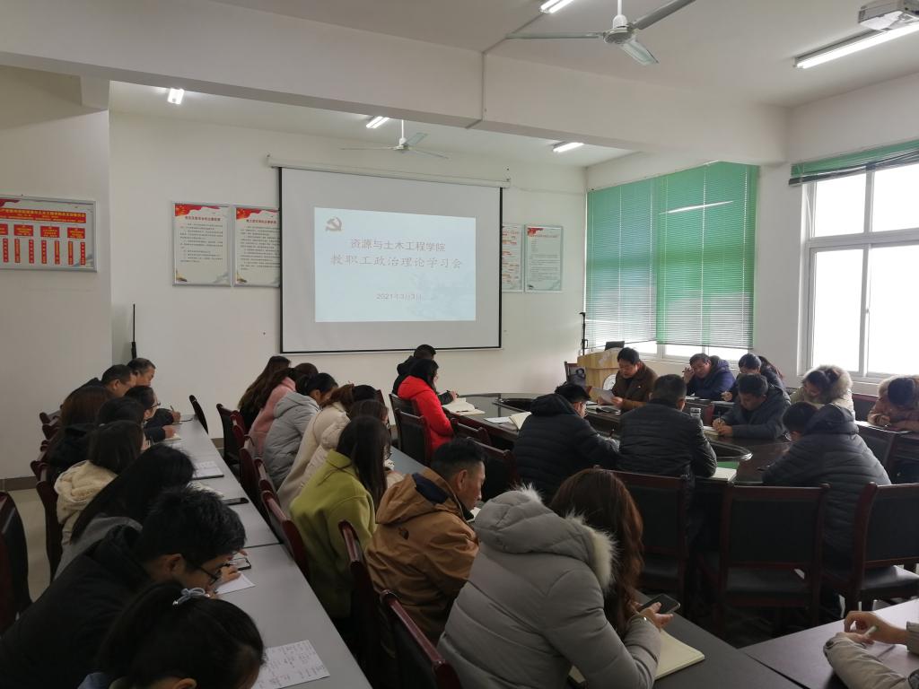 3月3日上午,资源与土木工程学院在工科楼三楼会议室召开全体教职工理论学习会,认真学习习近平总书记在党史学习教育动员会上的重要讲话。张持堂主持会议,全体教职工参加学习。