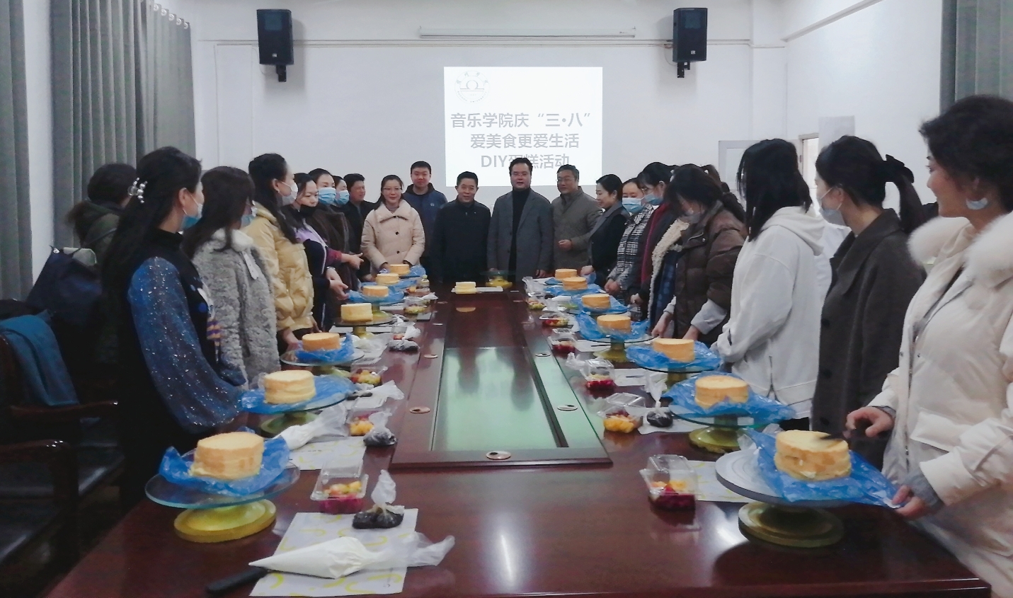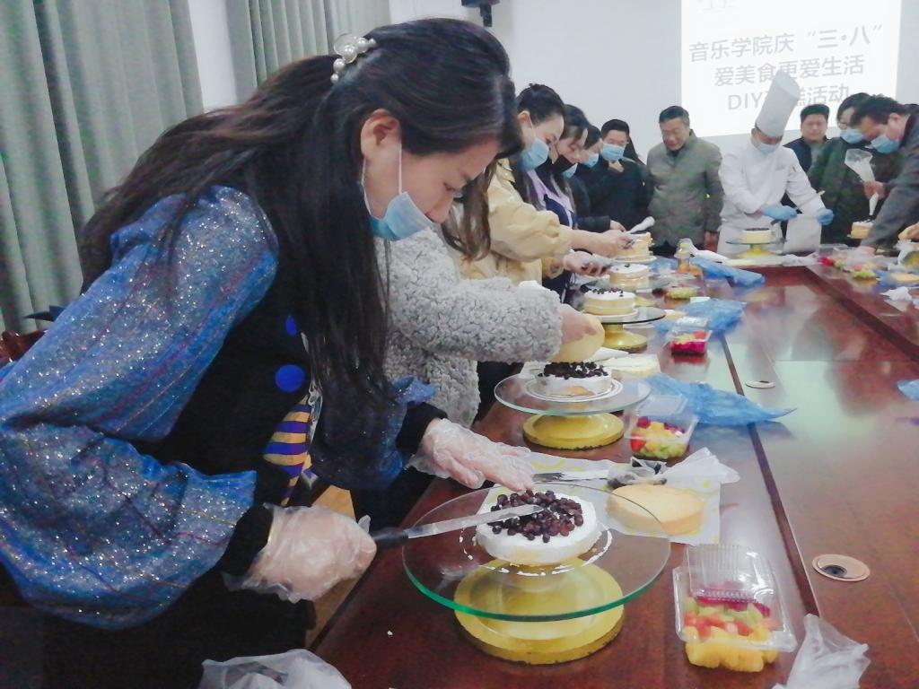 为庆祝“三·八”妇女节,体现学校和学院各级领导对广大女性教职工的关心和问候,进一步丰富女教职工的业余文化生活,增强凝聚力。音乐学院于3月8日下午15:30在艺术楼一楼会议室举办“魅力女性、爱美食更爱生活”DIY蛋糕体验活动。本次活动由宿州学院工会主办,音乐学院分工会承办。校工会主席王勇、音乐学院院长顾大海、音乐学院党委副书记徐强(临时负责)、音乐学院工会主席王善虎、校工会张倩科长以及音乐学院女教职工们参加了此次活动。
