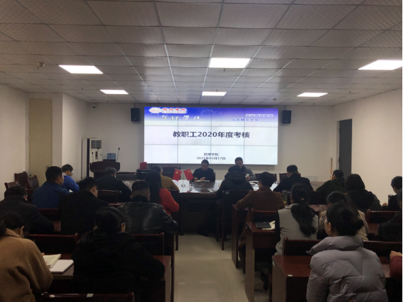 按照《宿州学院教职工年度考核办法(试行)》(校人字〔2018〕5号)、《关于做好我校教职工2020年度考核工作的通知》等文件要求,以及我校2020年度考核工作部署。2021年3月17日下午,管理学院在实训楼C301召开教职工2020年度考核会议,学院全体教师参加,会议由副院长韩传龙主持。